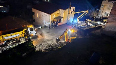 Bilgi verilmesi üzerine bölgeye 20 işçi, 1 dozer ve 5 arazöz sevk edildi.