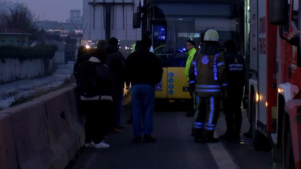 İKITELLI KÖPUKUKUN GEKTIKTEN SONRA Otobusun Balatalaindan Dumanlar ÇekakMaya Dahahladi. Sünukük çabucak otobuk Durdurup Yolcuculari TAHLIYE etti.
